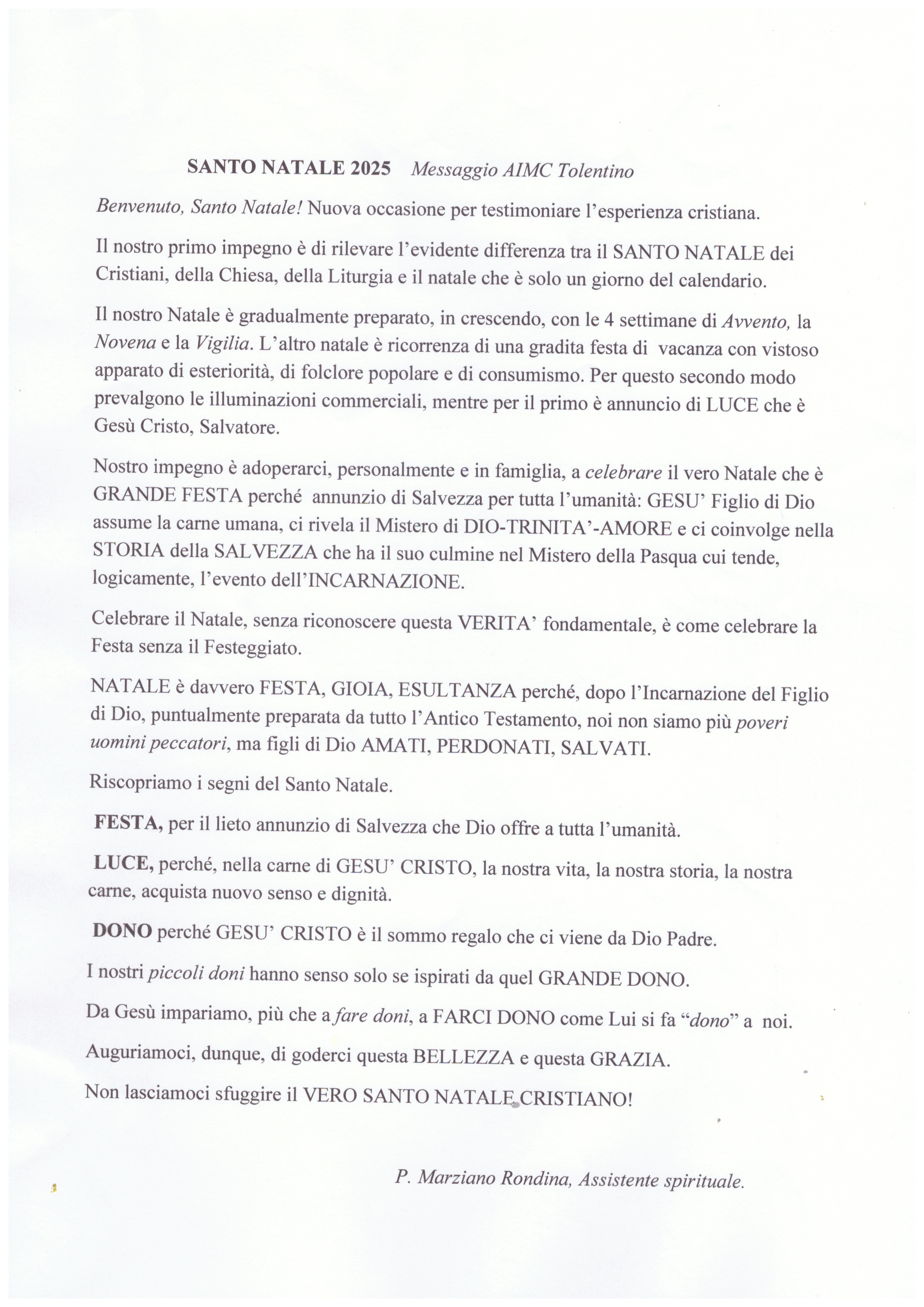 In questo fine 2025, la Sezione AIMC di Tolentino ringrazia Responsabili associativi e scolastici, Soci, Simpatizzanti e, in vario modo, Benefattori. A tutti augura un Felice Natale e un Buon 2026! |